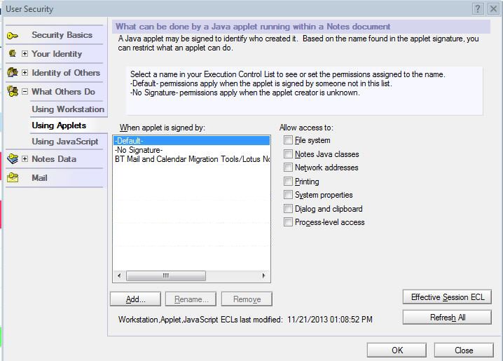 An issue with Eclipse and therefore Notes 8. With Microsoft's increasing predominance in office productivity software, the desktop integration focus switched for a time to Microsoft Office. Notes and Domino 6 allowed client ECLs to be managed centrally by server administrators through the implementation of policies.